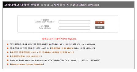 ※등록확인(영수증)조회 바로가기는 대학원 신입생등록기간에만오픈됩니다.
