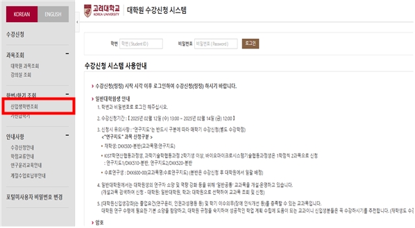 - 수강신청사이트(http://sugang.korea.ac.kr/graduate/ ) 임상치의학대학원- 학기선택-1R